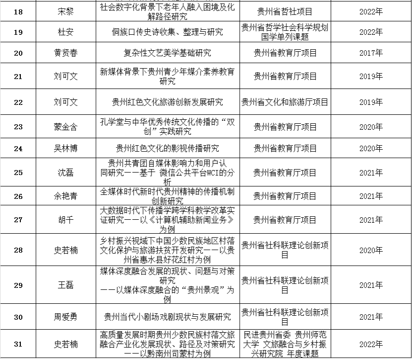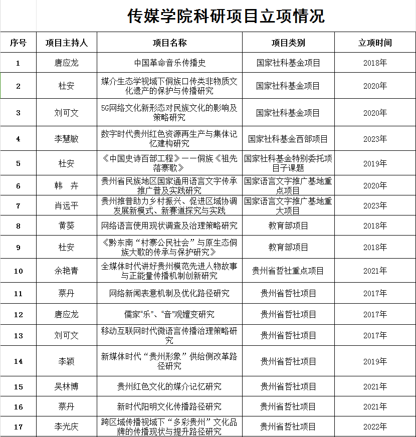 科研情况: 国际足联官方网站中文充分重视科研工作,不断加强科研管理,提高科研质量。公司教师先后申报获批国家社科基金项目3项、国家社科基金西部项目1项、国家社科基金特别委托项目子课题1项、教育部人文社科项目2项、国家语言文字推广基地重点项目1项、国家语言文字推广基地重大项目1项、贵州省哲社项目10项、厅局级项目14项,其他横向项目16项,科研项目总经费达930余万元。公司教师先后出版学术专著4部,发表论文97余篇,其中核心及以上期刊35篇;荣获贵州省文艺理论奖1项、贵州省广播电视论文奖2项、省高校人文社会科学研究优秀成果奖1项,获批专利4项。